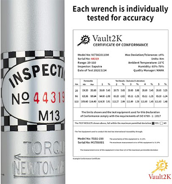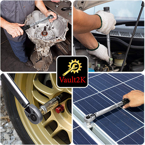 The Vault2K Bi-Directional 3/8 Inch Drive Click Torque Wrench is constructed from high quality, heat-treated chrome vanadium steel. It’s a valuable precision tool that every mechanic and handyman needs.